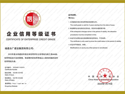 • 2024水利建設AAA企業(yè)信用等級證書